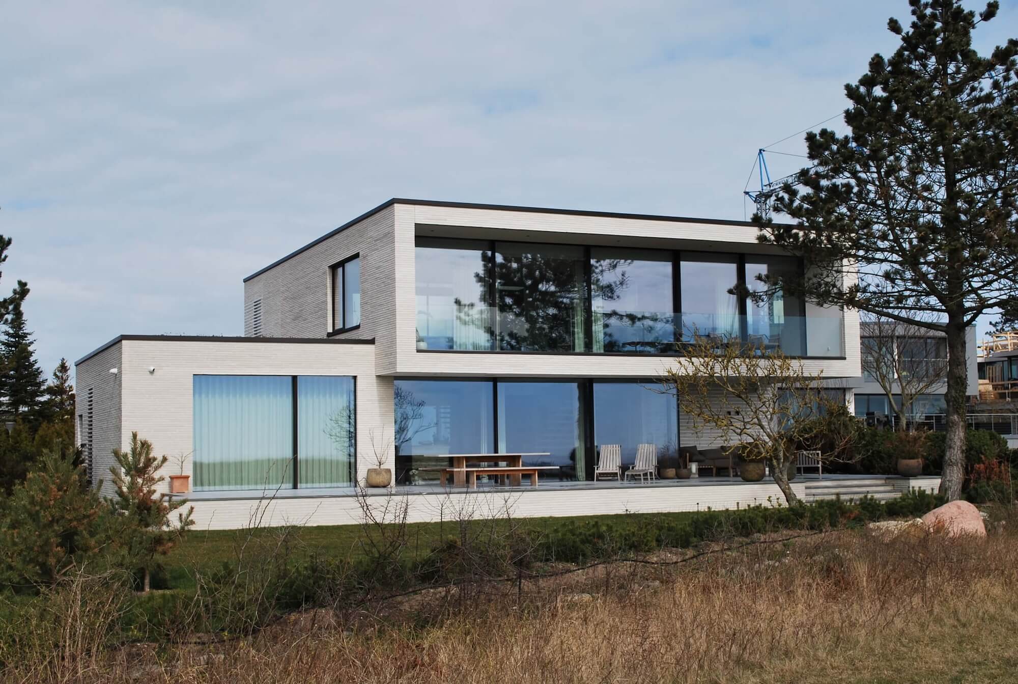 Derudover er villaen opført med ophængt murværk, hvor de mange arkitektoniske detaljer er udført med præcision for at opnå et let, svævende udtryk. Denne konstruktion kræver en særlig teknisk tilgang og præcist håndværk, hvilket vi med stolthed har leveret i projektet.