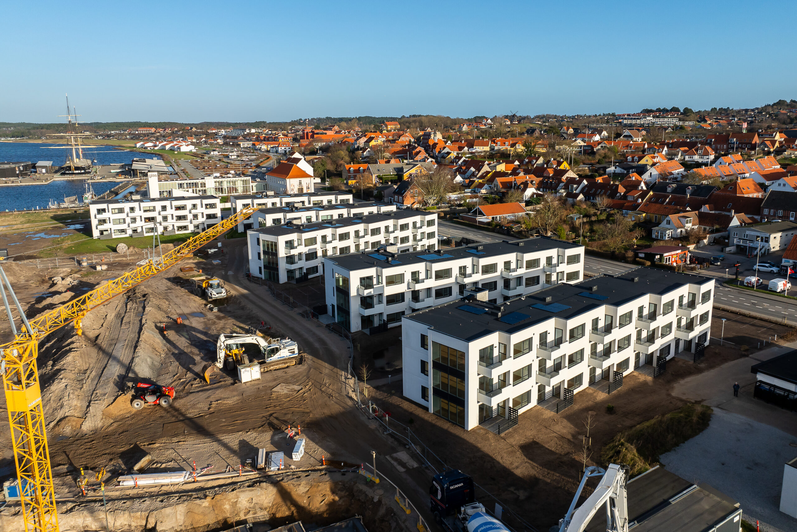 På Strandvejen i Ebeltoft opføres et moderne lejlighedskompleks, der består af seks bygninger, skabt med fokus på kvalitet, funktionalitet og enestående arkitektoniske løsninger.