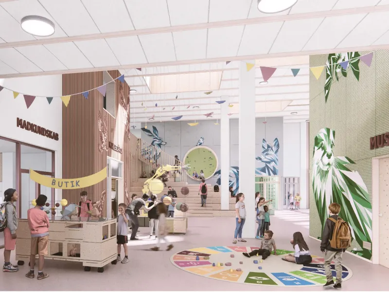 I Ry opføres en moderne skole og daginstitution, der skal danne rammerne for fremtidens læringsmiljøer. Projektet er designet med fokus på funktionalitet, kvalitet og langtidsholdbare løsninger, hvor både inde- og udearealer understøtter et trygt og udviklende miljø for børn og unge.